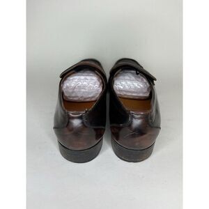 These vintage Sears loafers are a great addition to any man's shoe collection. Made in Italy with high-quality brown leather, they are perfect for any dress occasion. The size 9.5D fits comfortably, and the style is classic and timeless. These shoes are perfect for any man looking to add a touch of sophistication to their wardrobe.