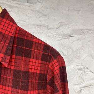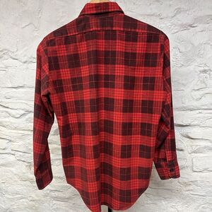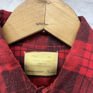 Sears Perma Prest Flannel Shirt Mens Small Red Plaid Grunge Work Vintage 60s 70s