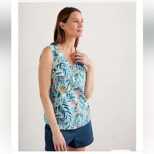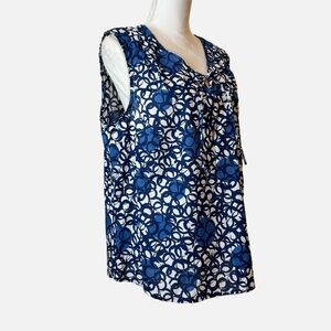 Seasalt Cornwall Cobbs Wells Top Sleeveless Cotton Blue Swirl Pattern Size 16