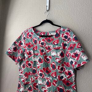 Seasalt Cornwall Porthmeor Linen Floral Dress Red Blue Plus Lined Sheath 18