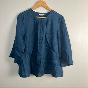 Seasalt Women's Top - teal Wild Fennel Button Through Linen Regular size 12