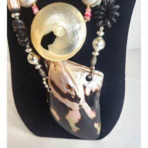 Seashell Beach Tropical Necklace set of 3 With Black, White & Mother Of Pearl,