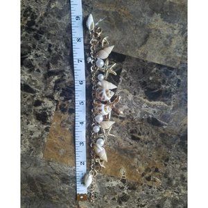 Seashell Bracelet Gold Tone Starfish Shells Charms