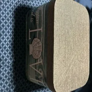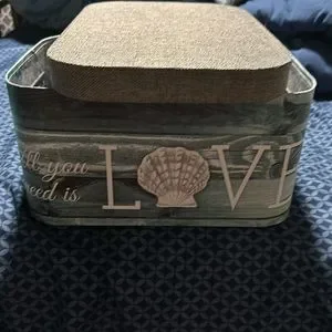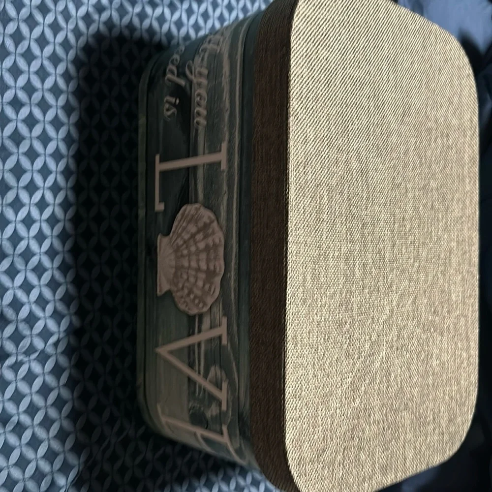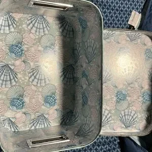 Beautiful seashell box. Never used. Two slots on the side for handles to carry