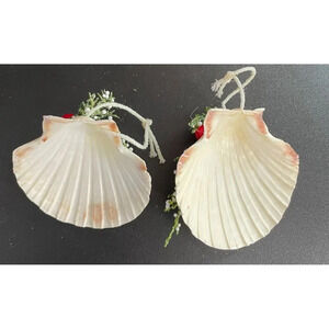 Seashell Glittery Christmas Holiday Ornaments Red Berries & Flowers Set Of 2