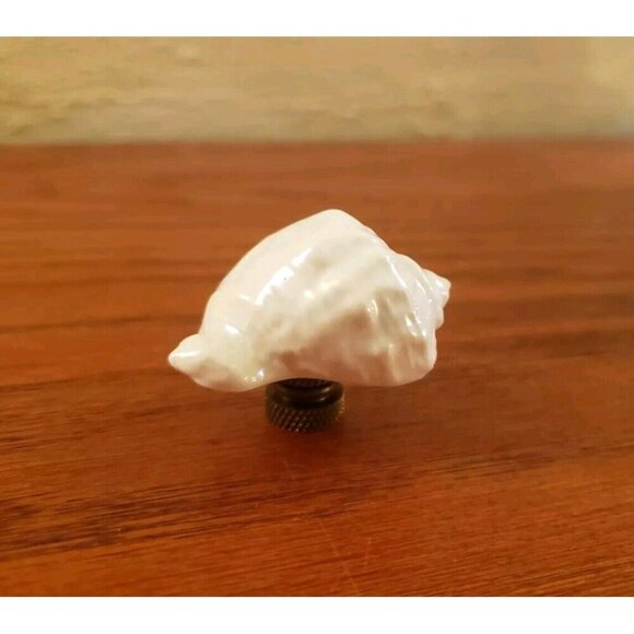 Beautiful Seashell Lamp Finial Shade Topper White Iridescent Coastal Vintage Ceramic. Fits standard harp. For medium to large lamps.