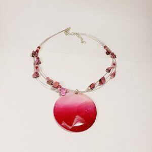 Seashell Pink Beaded Necklace with Pendant: Silver Tone Layered Illusion