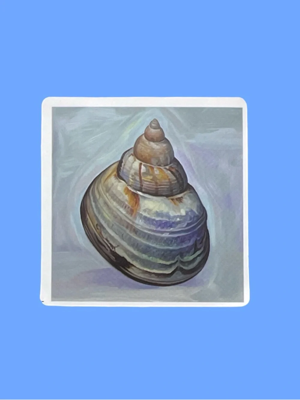 Seashell sticker. Blue, gray, and brown hues. Coastal vibe.