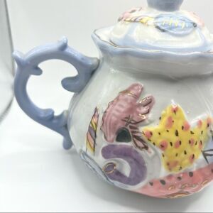 Seashell Ceramic Teapot Pastel Colors and Gold Accents