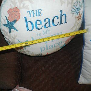 Seashells Beach "The Beach is my Happy Place " Quote Pillow Round NWT