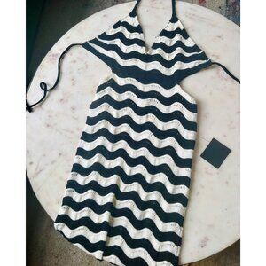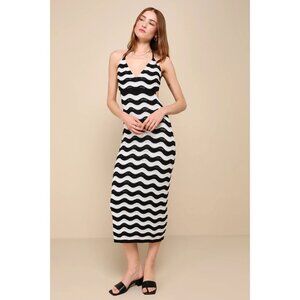 Seaside Afternoon Black and Ivory Striped Crochet Midi Dress Lulus size S
