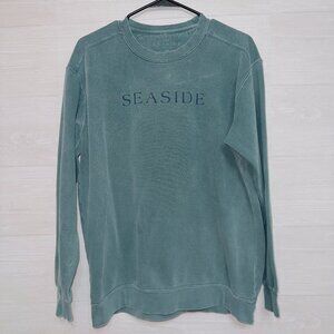 Seaside Crewneck Sweatshirt Blue Green Pullover Long Sleeve Women’s Size M