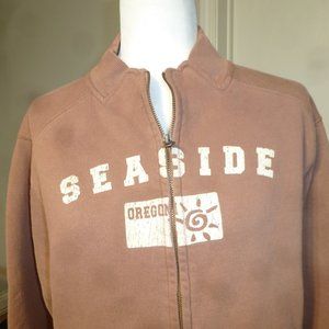 Seaside Oregon Vintage Athletic Fleece Zip Sweatshirt with Pockets Size Large