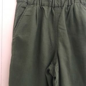 Pull on pant. Sits at hip.