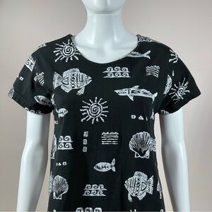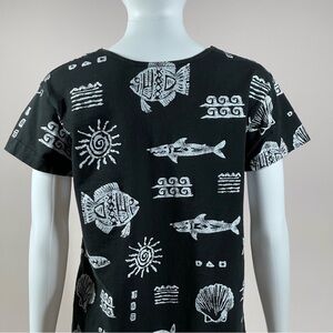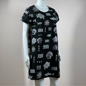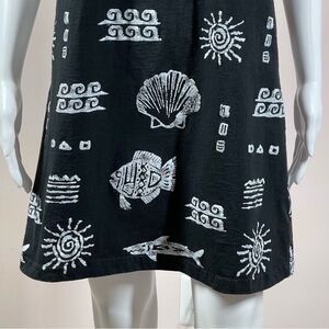 Excellent used vintage condition. Seaside Vintage Black Dress. Color: Black/White. Size label: One Size. Please see the flat lay measurements below.