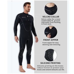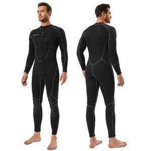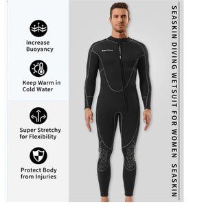 Seaskin Men's 3mm Long Wetsuit, Full Body Diving Suit Front Zip Wetsuit New Without Tags Size: Medium Material: Neoprene Color: Men's Fullsuit Brand: Seaskin Sport Type: Water sports Closure Type: Zipper Chest Size: 38 Inches Sleeve Type: Long Sleeve Waist (cm); 34 Inches Age Range (Description):Adult Size Map: M About this item This shorty wetsuit men is specially designed for water sports and water aerobics; wetsuit front zip provides UV protection and defense against sea lice, jellies and other biological irritants The mens wetsuit should fit snugly and tight to the body, thus to keep the body heat when in the water, you should get a ideal fit after several times uses; It’s made of high quality and durable material neoprene, stretchable and heat insulation Heavy duty YKK front zipper mens shorty wetsuit is easy for exit and entry; Flat-Lock Stitched Seams is excellent durability and fantastic comfort to keep your body warm in the coldest conditions for canoeing, sea kayaking, snorkeling, diving and other water activities Three layers of diving fabrics front zip wetsuit, the outer is imported nylon fabric, it is high elastic and durable; the middle insulation is neoprene, it is high scalability, waterproof and heat insulation; soft close skin heating to keep warm,it is close skin and comfortable soft warm