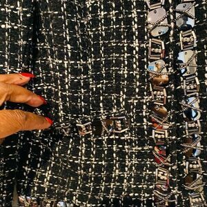 Season. js Tweed Embellished Trim Snap Button Blazer Size Small