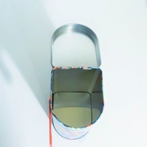 Available is a blue collectible tin that is reusable for ornaments, toys, etc.