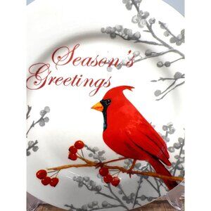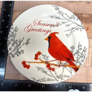 Seasons Greetings Figis Cardinal Plate 6 Inch Decorative Christmas Design