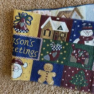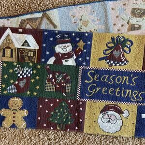 Season's Greetings Holiday Christmas Tapestry Table Runner Home Decor Decoration