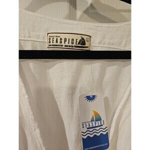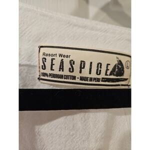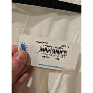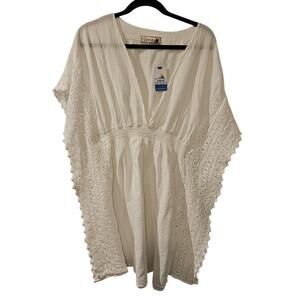 Seaspice Isla Cover Up Mini Dress White L NWT Cotton Crochet Sleeve Beach Resort