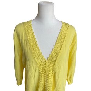 Seaspice Resort Wear Clara Tunic Dress Gauzy Peruvian Cotton Yellow Med Cover-Up