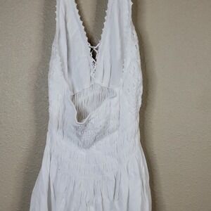 Seaspice Resortwear Daphne Peruvian Cotton Halter Maxi Dress White Large Hi Low