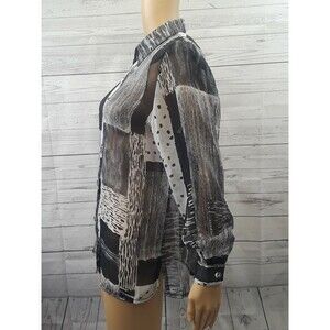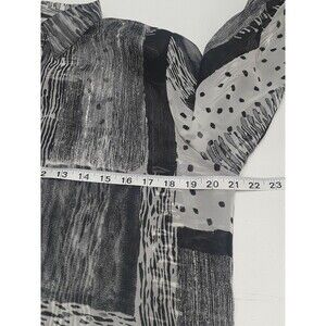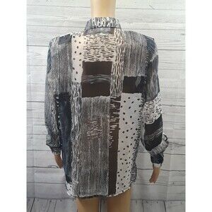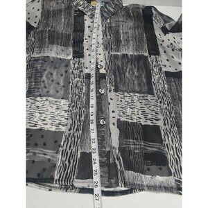 Seasuns Blouse Top Sheer Black White Sz S Long Sleeve Button Front Color block