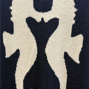 Stylish navy sweater featuring a cream seahorse design on the back. Perfect for casual wear.