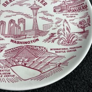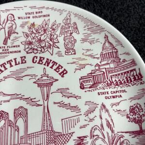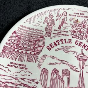 Seattle Center Red Transferware Vernon Kilns Vintage Plate - Washington Souvenir