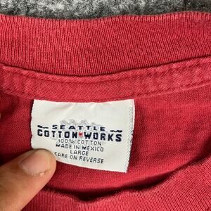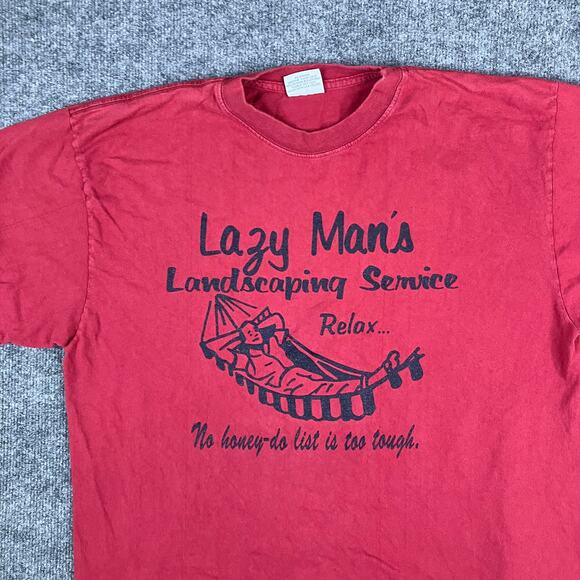 Seattle Cotton Works T-Shirt Mens Size L Red Funny Lazy Man Landscaping Graphic