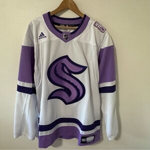 EUC Seattle Kraken adidas Hockey Fights Cancer Primegreen Authentic Blank Jersey