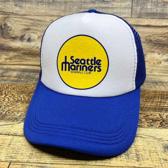 Seattle Mariners Mens Trucker Hat Blue Snapback 1977 Original Logo Baseball Cap