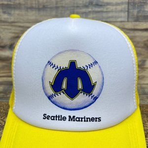 Seattle Mariners Mens Trucker Hat Yellow Snapback Retro Logo Baseball Cap