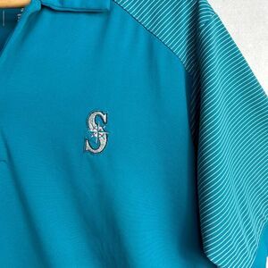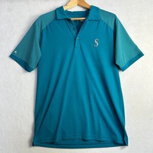 Seattle Mariners Shirt Mens Size Medium Short sleeve Teal Baseball Polo Vintage