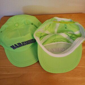 New never worn without tags Seattle Mariners snapback caps, set of two. The caps are lime green with the Mariners logo in navy blue and white, and KeyBank logo on the back. Adjustable snapback and one size fits most.