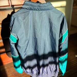 Absolute drip. Vintage navy Starter jacket bought in Seattle. Worn but in excellent shape for its age. Zipper hood collar. Colors have not faded or anything. Nice chunky zipper.
