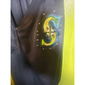 • Rhinestone-accented Seattle Mariners logo
