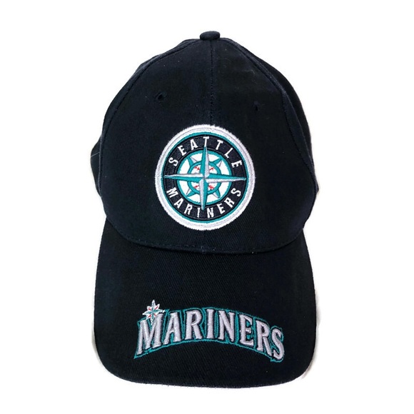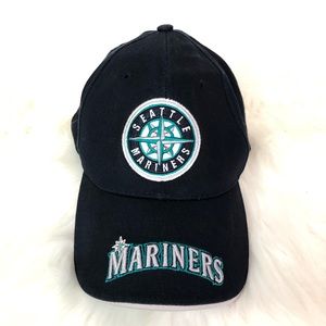 Seattle Mariners baseball hat with adjustable Velcro strap. Navy blue color. Good preowned condition. Is as shown in photos.