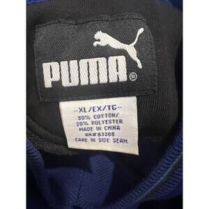 The Seattle Seahawks Puma sweatshirt is a vintage NFL pullover in size XL, featuring a classic blue color scheme. This retro football fan apparel is officially licensed by the National Football League and showcases the iconic Puma brand logo. Made in China, this sweatshirt is a stylish and comfortable way for fans to show their support for the Seattle Seahawks on game day or while out and about.