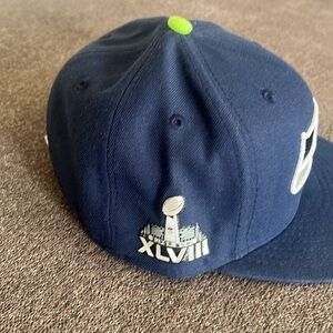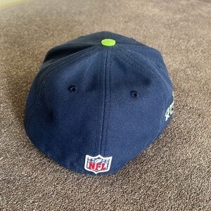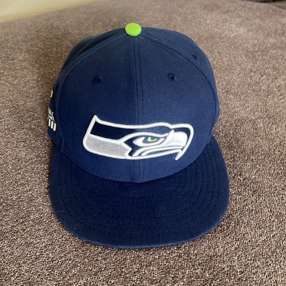 Seattle Seahawks cap in dark blue with team logo. Features a green accent on top.