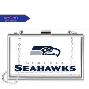 Stylish clear acrylic clutch with Seattle Seahawks graphic. Perfect for game day!