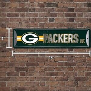 Green Bay Packers Rico Industries NFL Metal Street Sign Metal Street Sign 4" x 15" Home Décor - Bedroom - Office - Man Cave