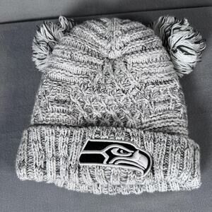 Seattle Seahawks Hat Cap Womens Gray NFL Football Pom Beanie Fleece New Era