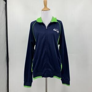 Seattle Seahawks Jacket Womens XL Navy Lime Fleece Lined Zip Up Track NFL