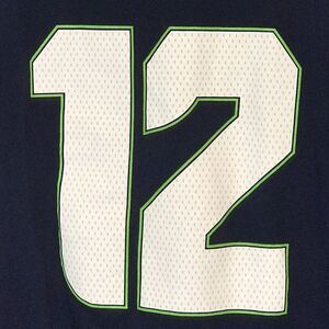 Seattle Seahawks NFL Navy Blue Tee.12th Player FAN, Adult size Large, Majestic Brand, Football T-Shirt.