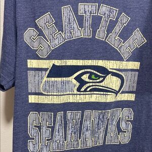 seattle seahawks shirt, nfl team apparel, vintage seahawks tee, heather blue graphic tee, distressed football shirt, mens xl nfl shirt, sports fanwear