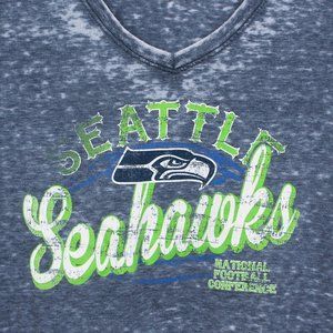 Seattle Seahawks Shirt Womens Large Blue NFL Burnout V-Neck Tee