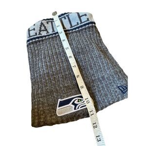 This beanie is official Seattle Seahawks merchandise, featuring the team logo. It is made from comfortable knit material and is designed for unisex adults. The beanie is multicolored and suitable for casual winter wear. It is pre-owned.