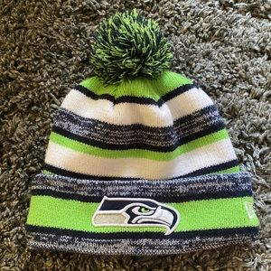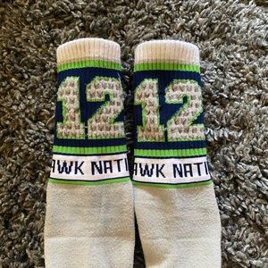 SEATTLE SEAHAWK HAT/ SOCK BUNDLE!! it’s officially football season, so it’s the perfect time to rep your fave team!! this bundle comes with a lightly worn seahawks beanie that’s perfect for fall/ winter! along with that, you’ll get 2 pairs of seahawks socks. one pair are super cool Seattle Strideline socks, and the other pair are gray 12th man hawk nation socks!